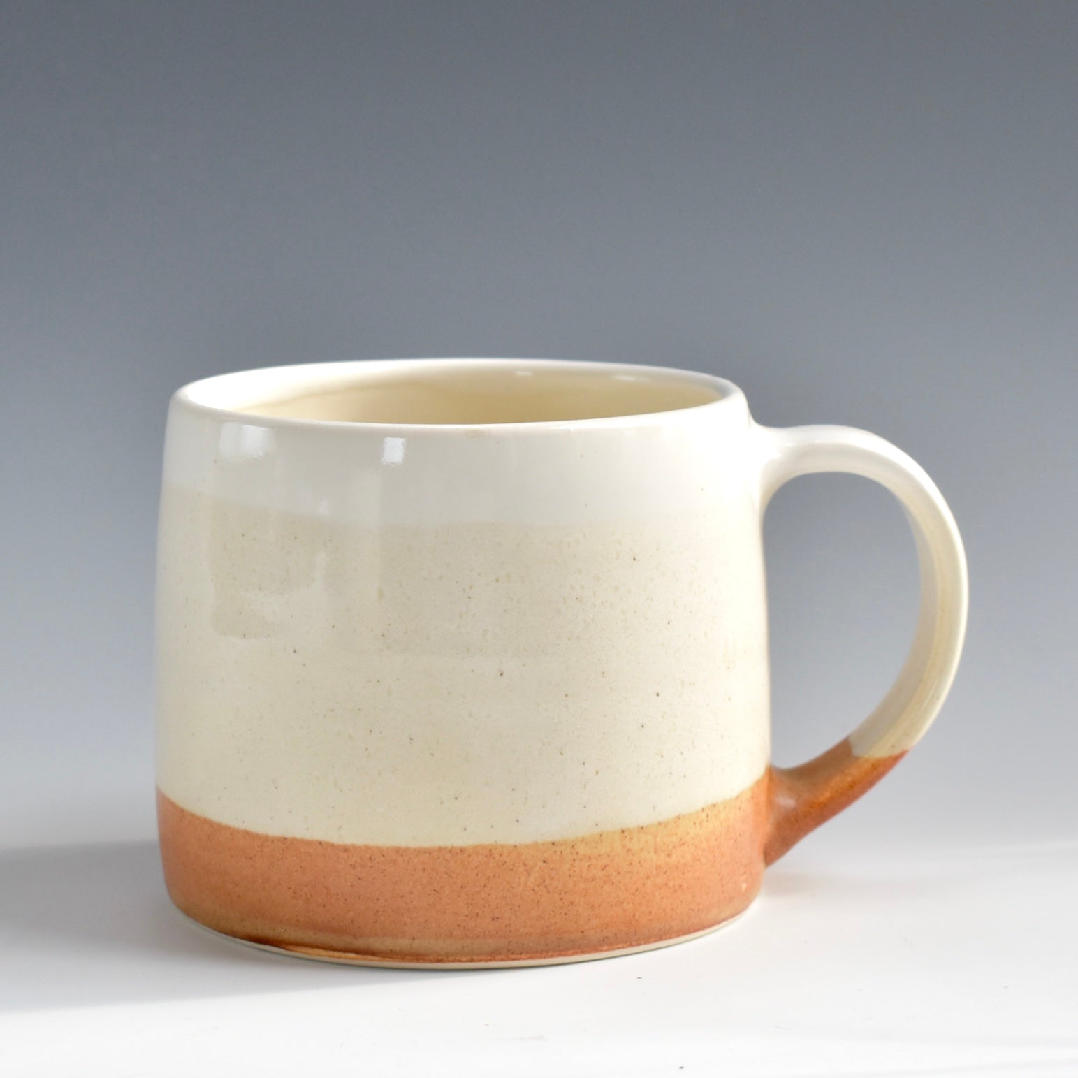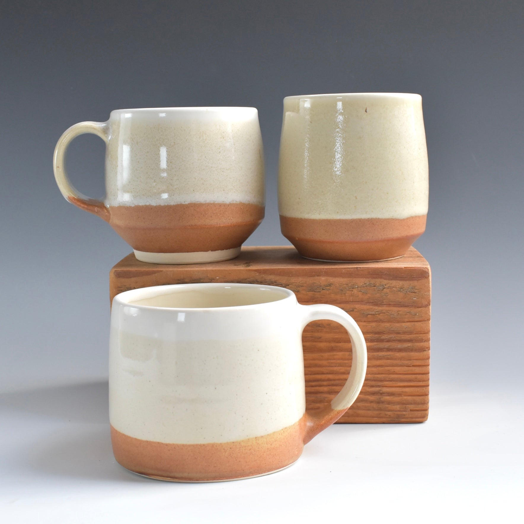 This line of drinkware gets its name from the gorgeous overlapping blend of the warm pumpkin and white glazes. They come in three styles; a square and pedestal mug with comfortable handles and a tumbler to warm your hands on.