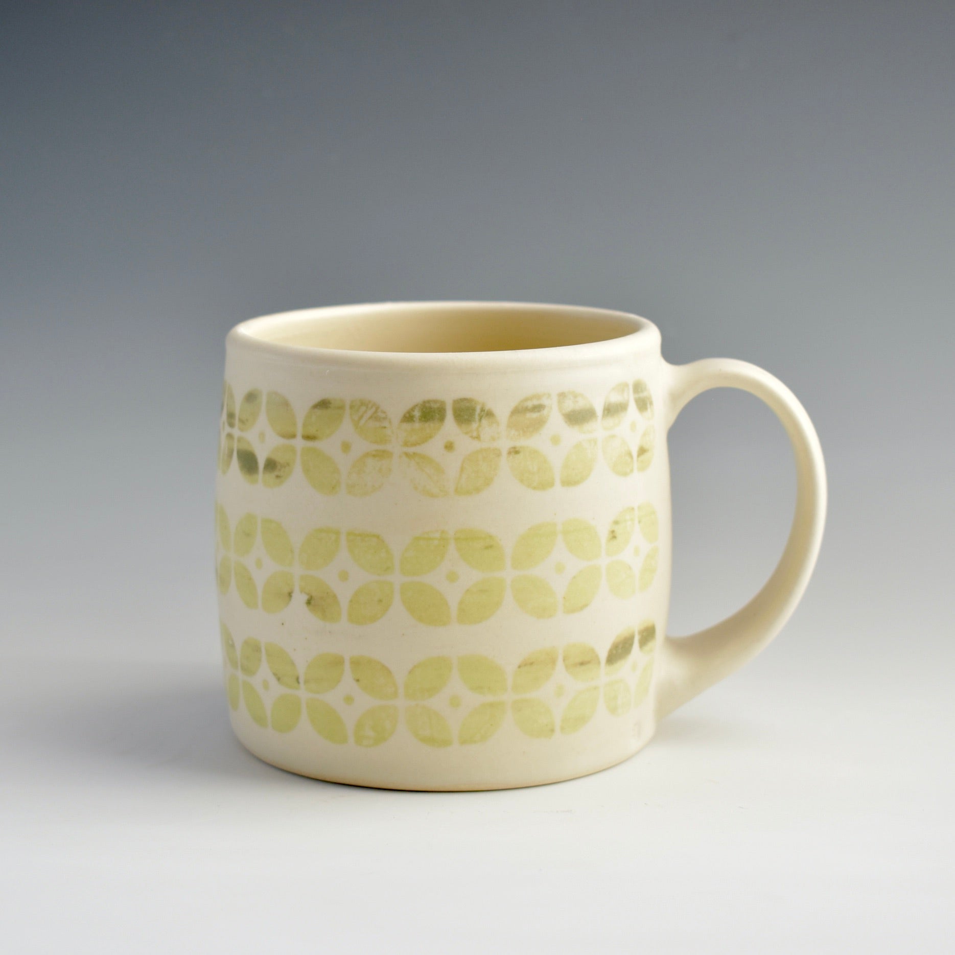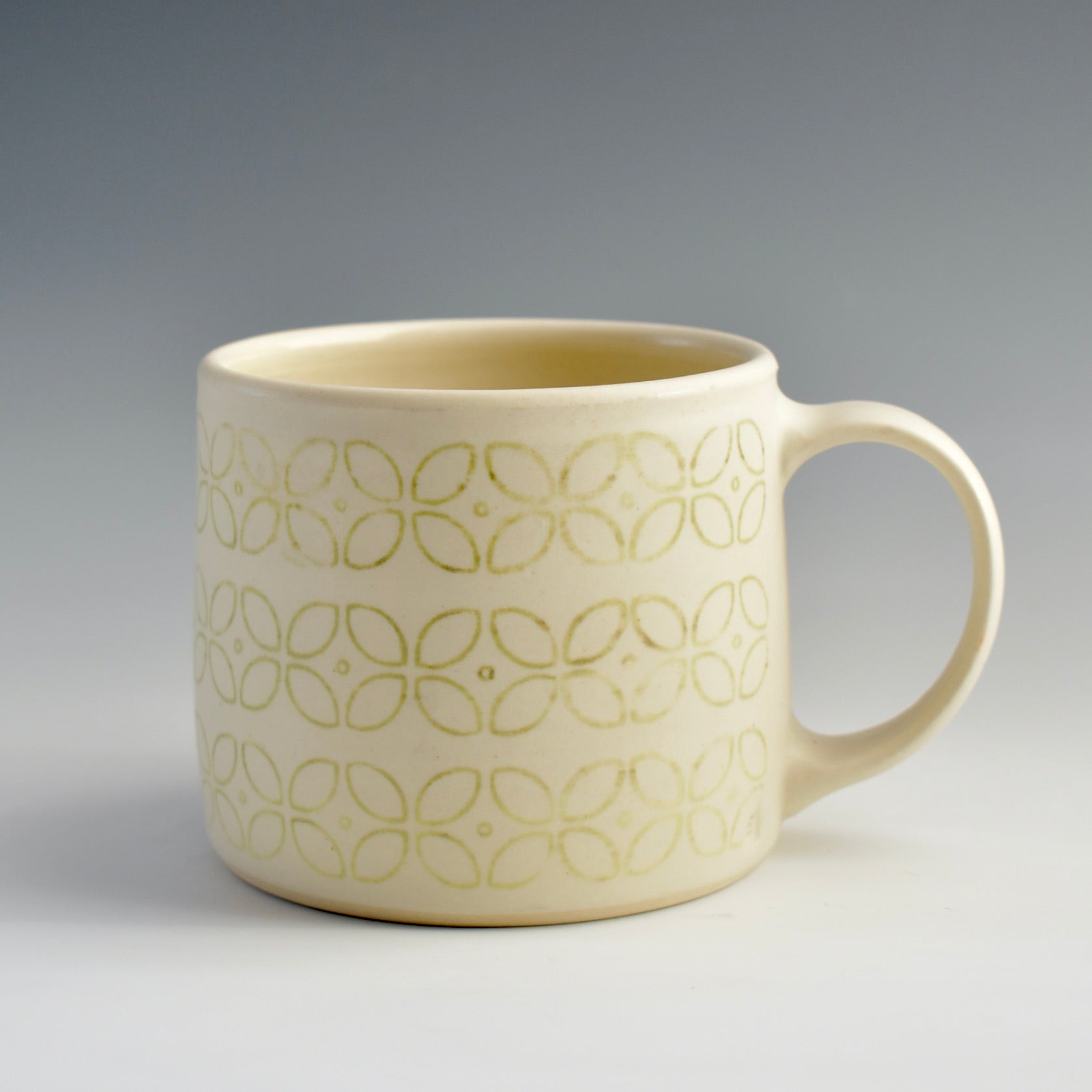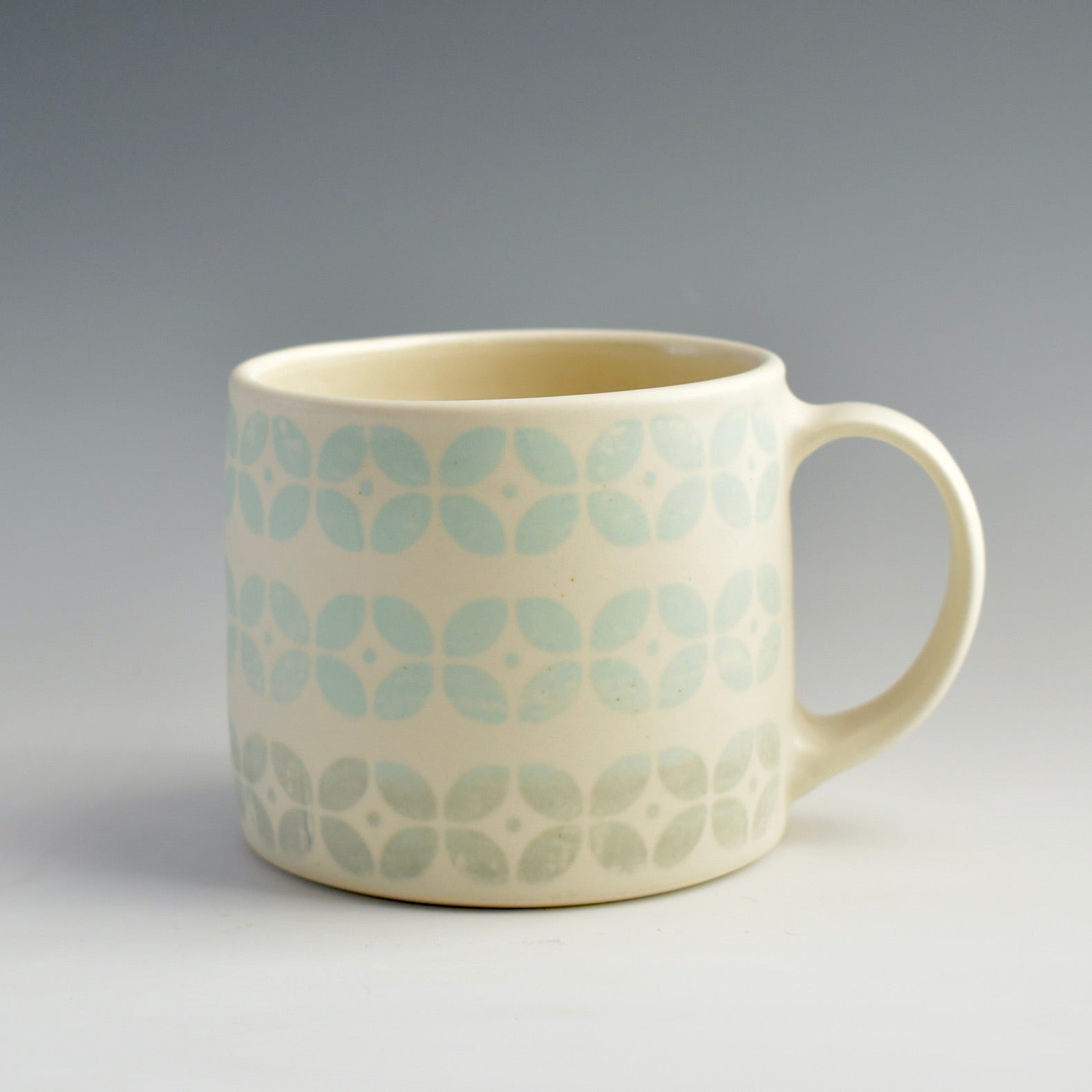 This retro pattern is inspired by memories and colours from my own childhood through the 70's and 80's. The glaze has the softest satin feel. They have a comfortable generous handle.